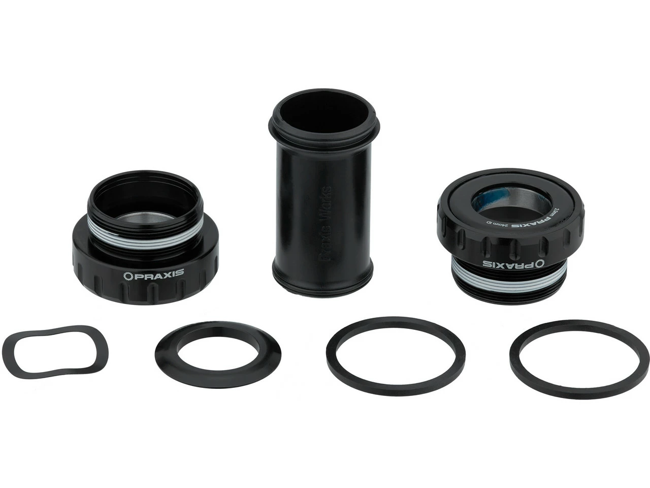 Lieferumfang:1 x Lagerschale Praxis Works M24 BSA mit Lager, links1 x Lagerschale Praxis Works M24 BSA mit Lager, rechts1 x Innenlagerhülse Praxis Works BSA1 x Staubkappe 24 mm x 2 mm für Antriebsseite1 x Staubkappe 24 mm x 3,7 mm für Antriebsseite1 x Unterlegscheibe, wellenförmig, für Antriebsseite1 x Staubkappe 22 mm x 1,7 mm für Nichtantriebsseite1 x Spacer