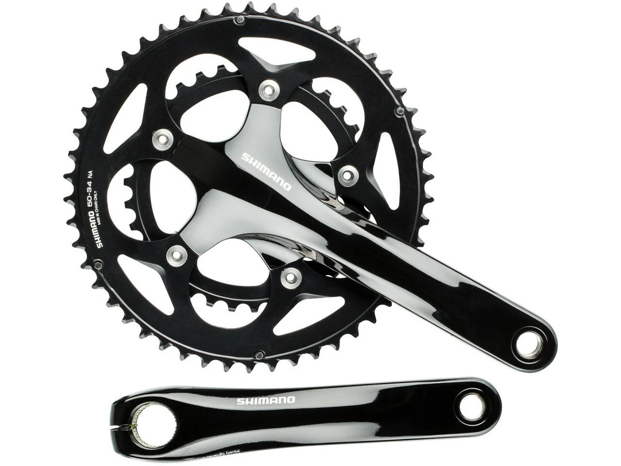 Spezifikationen:Einsatzbereich:RoadKompatibilität:Shimano 2×10-fachKettenblattbefestigung:110 mm Lochkreis, 5-ArmTechnische Daten:Material Kurbelarme:AluminiumMaterial Kettenblätter:AluminiumAbstufung:34-50Kurbelarmlänge:170,0 mm, 175,0 mmKettenlinie:43,5 mmQ-Faktor:150,3 mmAchsdurchmesser:24 mmKompatible Gehäusebreite (bei BSA-Innenlager):68 mmInnenlager (empf.):BB-RS501 oder BB-RS500-PB Pressfit Hollowtech II (nicht im Lieferumfang)Kette (empf.):HG-X 10-fach (CN-HG54)Kompatibilität:Schalt-/Bremsgriff:ST-6700, ST-5700, ST-4600, ST-R460, ST-4700, ST-RS405, ST-4720, ST-4725, ST-RX400Schaltgriff:SL-R780, SL-4600, SL-R460, SL-4700Umwerfer:FD-4600, FD-R460, FD-4700Innenlager:BB-R9100, SM-BB9000, SM-BBR60, SM-BB6700, SM-BB5700, BB-RS501, BB-RS500, SM-BB4600, SM-BB92-41B, SM-BB72-41B, SM-BB71-41B, BB-RS500-PBKette:CN-M981, CN-M980, CN-HG95, CN-HG94, CN-HG75, CN-HG74, CN-HG54Features:erschwingliche Kurbelgarnitur für 10-fach-Systeme ohne Kompromisse bei der SchaltleistungKurbelarme lackiert, Kettenblätter eloxiertKettenblattschrauben aus rostfreiem StahlTechnologie:2-Piece Crankset