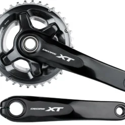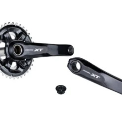Die Shimano XT FC-M8000-B2 Kurbelgarnitur ist eine Variante der FC-M8000-2 mit 3 mm weiter außen liegender Kettenlinie. Sie kann daher nur in Rahmen mit 148 mm Einbaubreite hinten verwendet werden. Die Aluminium-Kurbel ist mit zwei Kettenblättern in der Abstufung 24-34 oder 26-36 Zähne bestückt. Sie wurde im Hinblick auf Übersetzung und gleichmäßigen Tretrhythmus optimal abgestimmt (Dyna-Sys11 Technologie), wobei das seit vielen Jahren bewährte Hollowtech II Design mit fest verbundener 24 mm Achse für ein ausgewogenes Verhältnis von Steifigkeit und Gewicht sorgt.